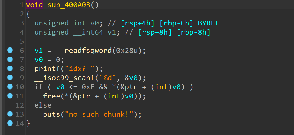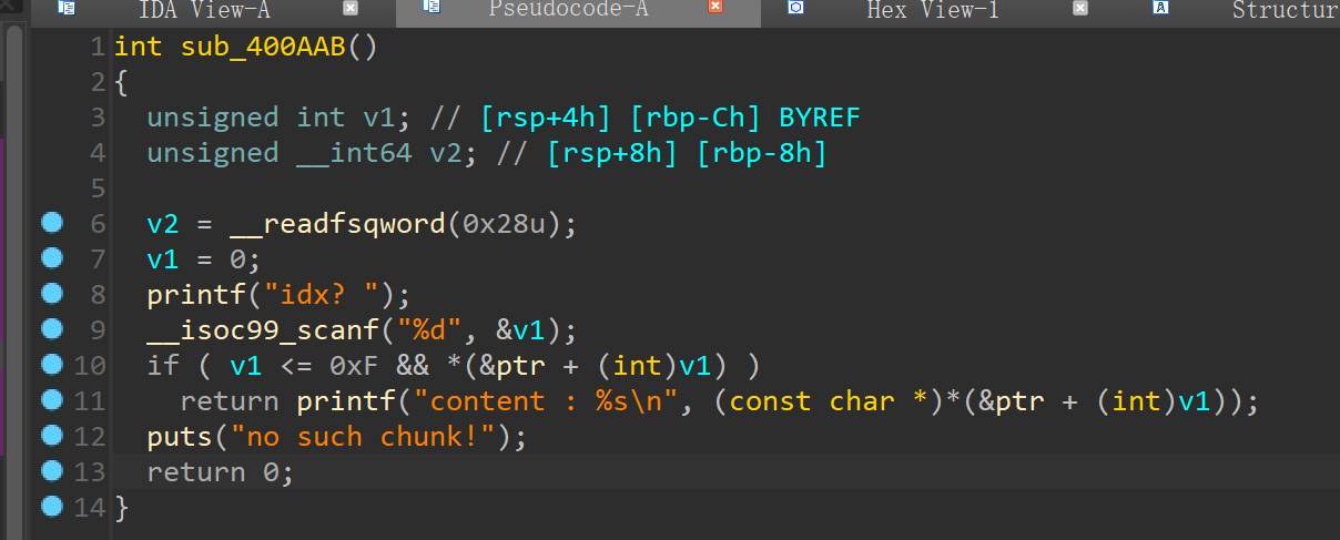 LitCTF 2024_heap-2.23 2.23 经典的 fast bin attack,还是比较简单的,通过制造 unsorted bin 来泄露 libc_base. 因为 free 函数这里没有对堆块指针置 0,打印堆块的函数中的检测形同虚设 可以利用这点对已被释放的堆块进行打印,借此泄露出 libc_base 接着依旧 uaf,编辑堆块的功能也因为 free 函数没有对管理堆块的指针置 0 而可以直接对被释放的堆块进行编辑,我们可以通过编辑被释放堆块的 fd 指针来将堆块申请到 __malloc_hook 附近,接着通过编辑堆块的功能来将 __malloc_hook 改写成 one_gadget