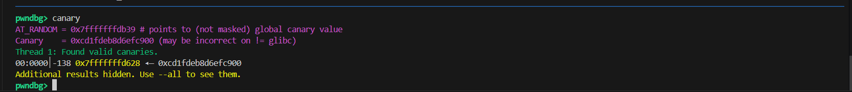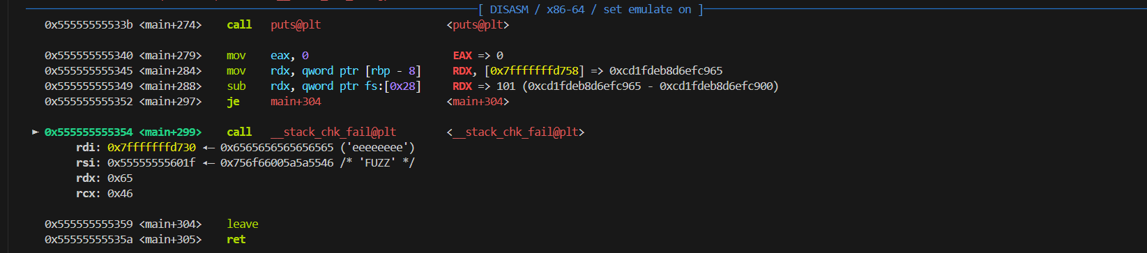 可以看到最终是在main函数返回之前的canary验证这里就死了