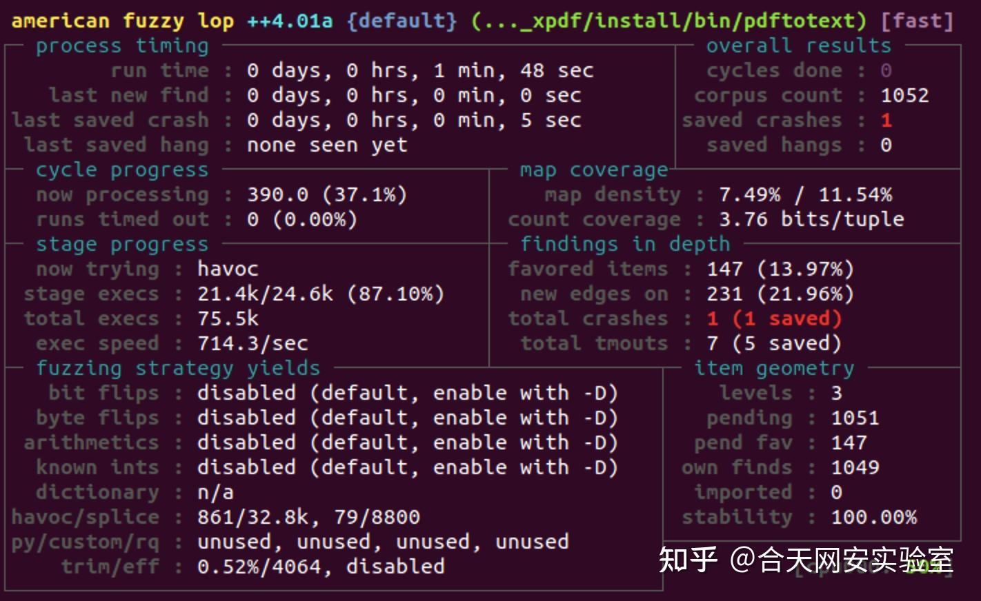 我这里跑了大概7分钟才跑出来第一个crash, 但是知乎的这个师傅只用了1分多钟